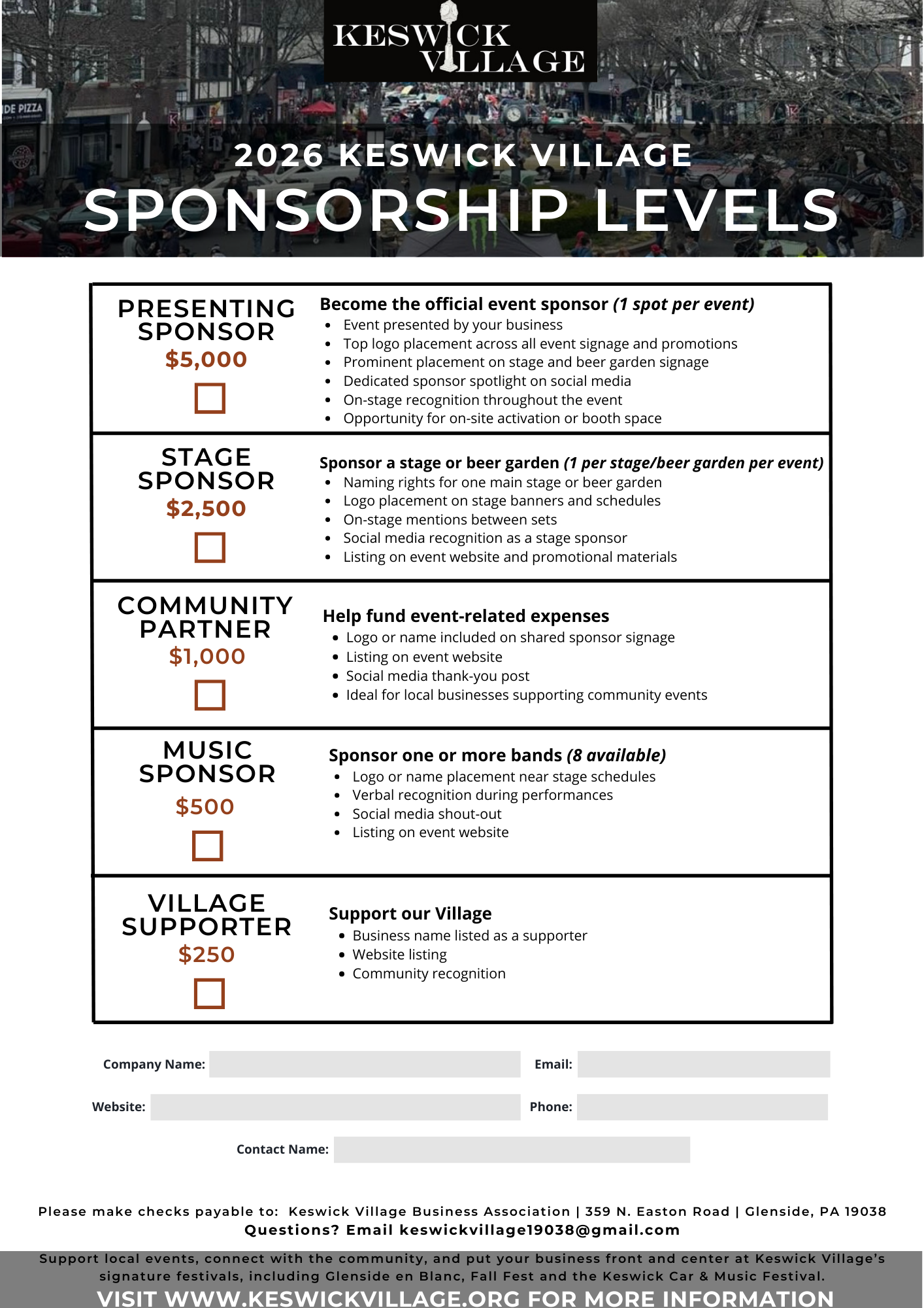 Thank you for supporting Keswick Village and helping us create meaningful, community-driven events.